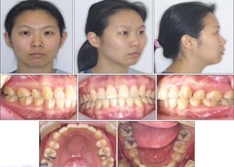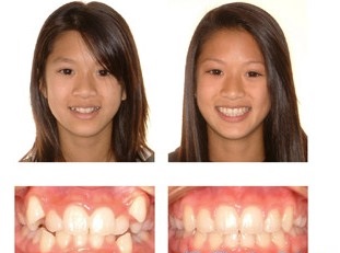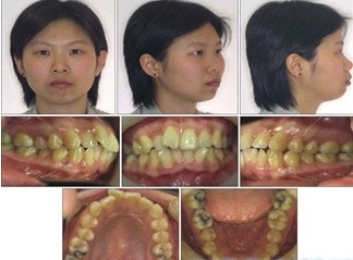 Hình: ca chỉnh nha răng chen chúc sau khi điều trị: có sự thay đổi rất rõ về khuôn mặt sau khi điều trị với kế hoạch nhổ 4 răng. Kế hoạch nhổ răng không hợp lý làm gương mặt của bệnh nhân gầy gò, hốc hác và “già” hơn trước khi chỉnh nha. Mặc dù răng xếp đều đặn, nhưng theo tiêu chuẩn về thẩm mỹ ngày nay, nhiều người sẽ đánh giá là không đẹp.